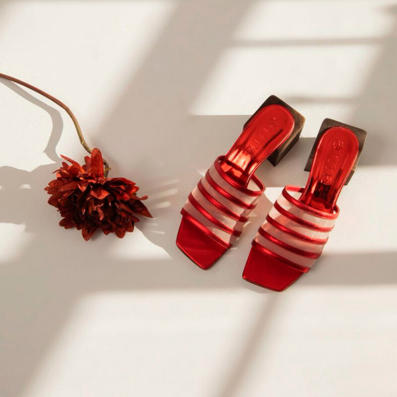 O couro acolchoado forma um nó que respira: gesto exato, presença leve.